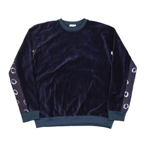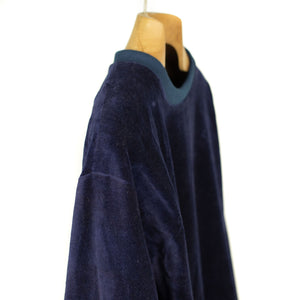 "Baller sweatshirts that we're always stoked to have in from Post Imperial. The deep indigo takes remarkably well to the cotton velvet. It oozes luxury, especially with the addition of their washed Funtua lining - it adds some weight and warmth that'd be greatly missed otherwise. The quilted panel is functional in that it's durable in a high-wear area, but it more importantly looks really sick."---Ludwin