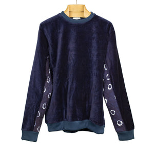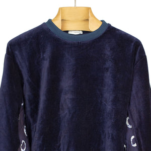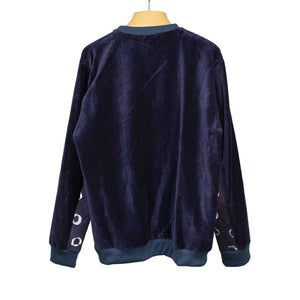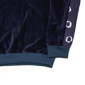 Ikeja quilted-panel crewneck sweatshirt in indigo cotton velvet
