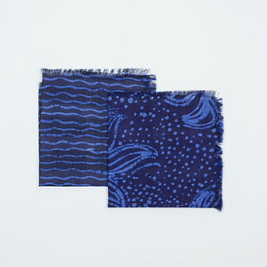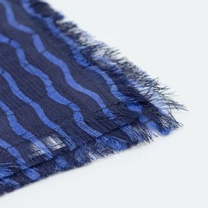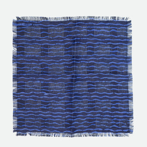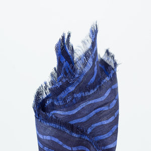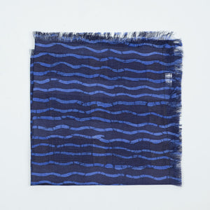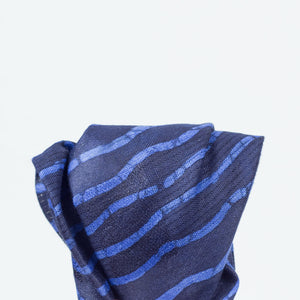 Indigo and azure blue cotton pocket square, broken wave stripe print