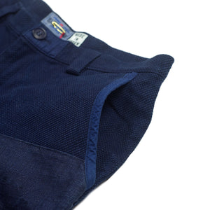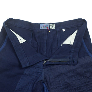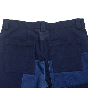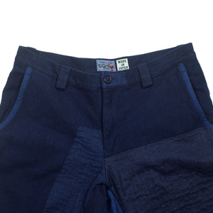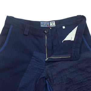 Indigo hand dyed "sashiko" and hand patched cropped trousers