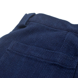 A perennial favorite, it's always exciting to see the new version of their patchwork trousers, and this season does not disappoint. A medium weight sashiko is hand dyed and hand-patched with a number of fabrics from the season, all showing their indigo in different ways.