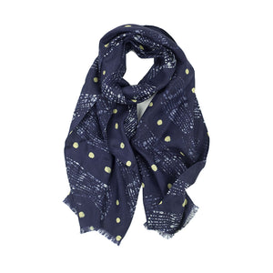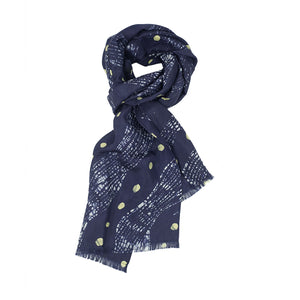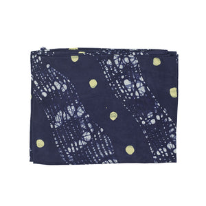 Beautifully lightweight silk treated in "Adire", an old & rare hand-dyeing process developed by the Yorubas in the Southwest region of Nigeria, where a cassava starch paste is hand-painted on the fabric and acts as the resist dye. Note that due to the nature of the process, each item is unique and varies in color and pattern.