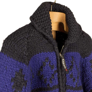 A contemporary take on traditional Cowichan hand-knit cardigans, the darker colors play well of each other and are easy to style.