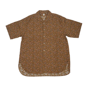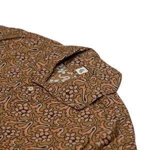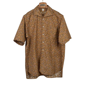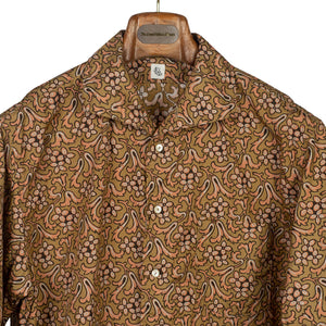 Italian collar shirt in ochre, peach, and brown vintage floral