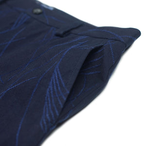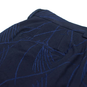 The flagship fabric of the season, these trousers are a cotton twill with all-over indigo dyed tonal stitching of Japanese silver grass that makes itself known when the light catches it just right.