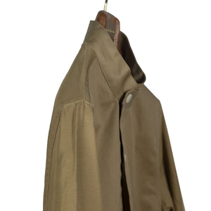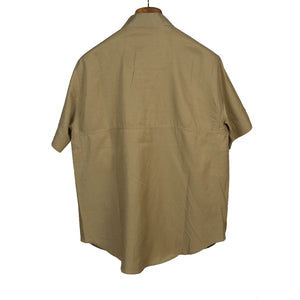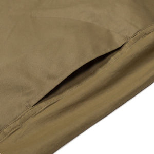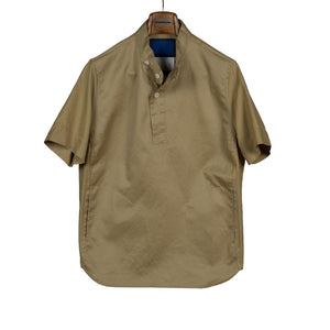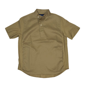 One of Document's signature top is the relaxed fit shirt with side entry pockets. Once you've had a taste of it, it's hard not to subscribe to the easy nonchalance of tucking one hands' in a popover's pockets and take things easy. This number has an ultra-light cupro back and sleeves and a heavier cotton twill front, dyed in a perfect color match.
