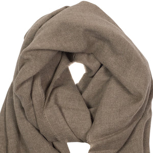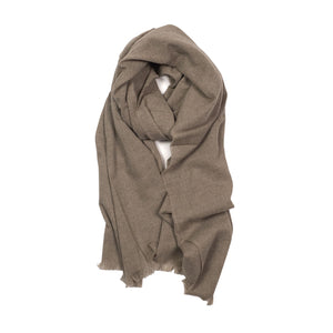 With its mixed yarns and washed finish, this large stole is so much more than a simple solid scarf. It has volume, texture, a subtle mix of neutral colors and a soft finish of lambswool and cashmere. The large size is ample enough to provide warmth and coverage.