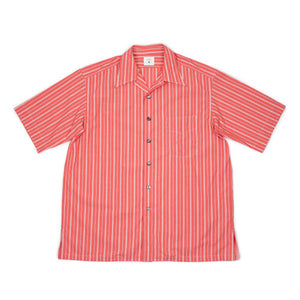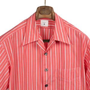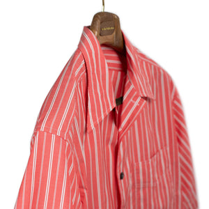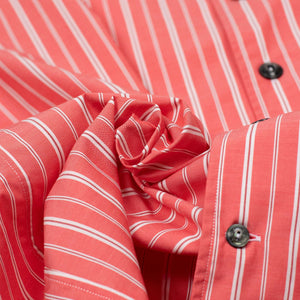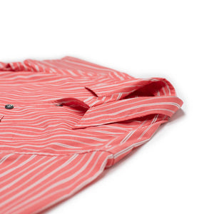 Come Up To The Camp shirt in coral and white striped cotton poplin