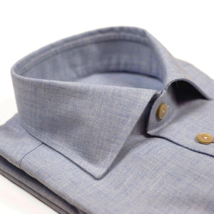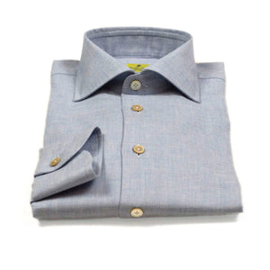 A handsome shirt with the unique hand of a cotton/wool mix. It can be dressed up with a knitted tie and sport coat - or dressed down with a cardigan and a pair of chinos or jeans