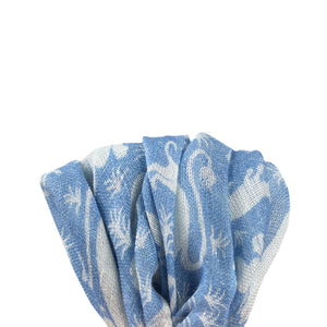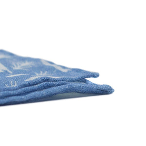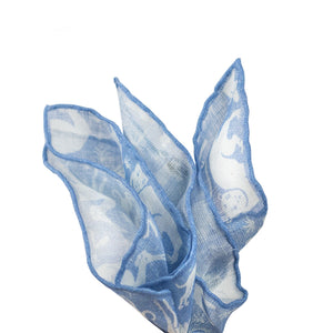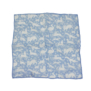Light blue linen pocket square, animal print