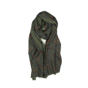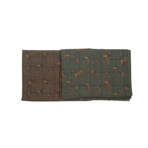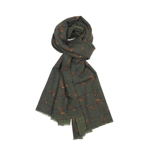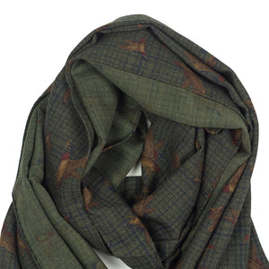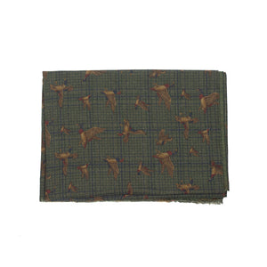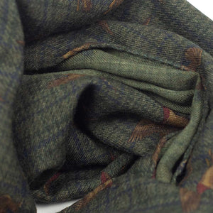 Lightweight wool print scarf, green plaid & ducks print