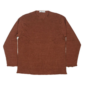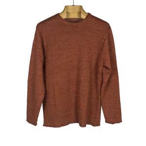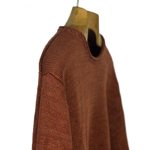 Linen rolled edge tunic sweater, "Henna" copper brown