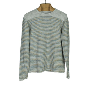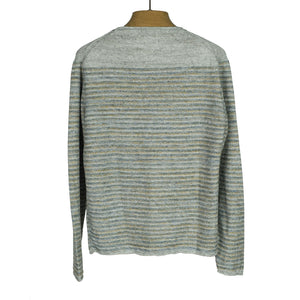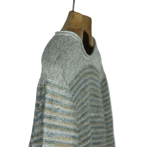 Linen rolled edge tunic sweater, light grey mix with gold & blue stripes