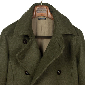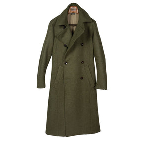 A monster of a coat, this double breasted great coat is outstanding in this sturdy green tweed made by two forester brothers in the Bavarian Forest.