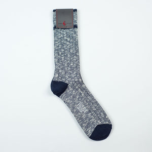 A classic companion for casual and weekend outfits, at ease in derbies or boots, these Sozzi socks have a great marled effect between colored and white yarns, and just the right amount of nylon and elasthane to ensure longevity and best fit.