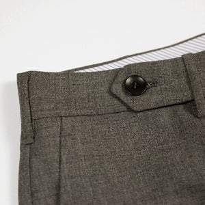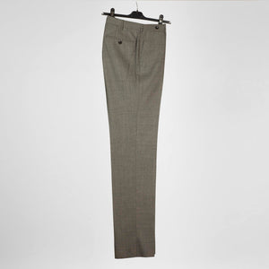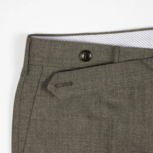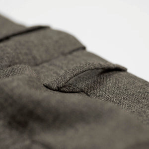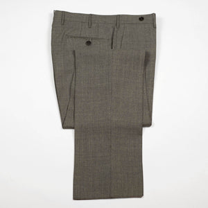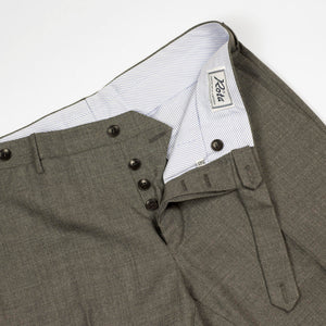 These wool trousers are cut from a lightweight open-weave wool cloth in a slim pattern. With their distinctive and rakish extended waistband closure, shirt-stripe lining and thoughtful details, they will pair as nicely with a sport coat as with a Capri collar shirt and linen cardigan.