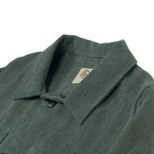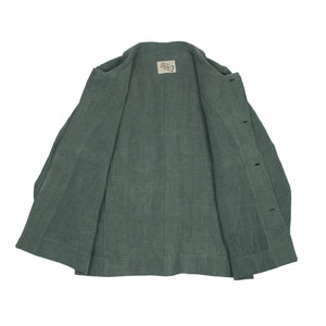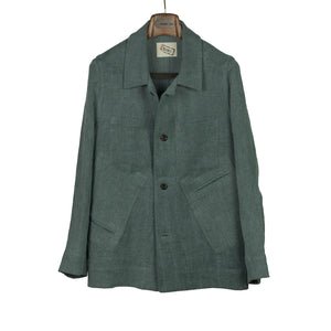 Mismatched pocket jacket in moss heavyweight linen canvas