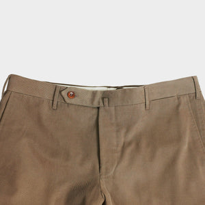 These trousers are cut from a medium weight cotton twill cloth. The stylish slim pattern and pick stitching details throughout add a sophisticated dimension to a pair of trousers that will enhance any business casual outfit.