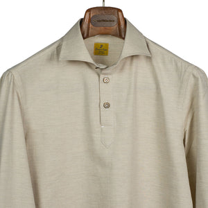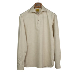 An all-time customer favorite: our long sleeve polo shirts in cotton flannel shirting fabrics, designed in collaboration with G. Inglese. Wear it untucked for a relaxed look, or with a sport coat for that smart casual approach. Cut from a beautiful Grandi & Rubinelli flannel woven in Italy, the shirt's sizing and fit is similar to our G. Inglese dress shirts with a shorter body length for better proportions when worn untucked.