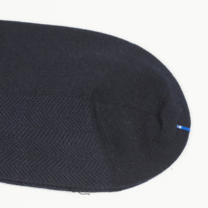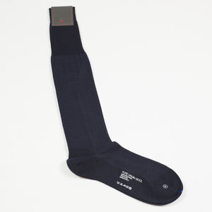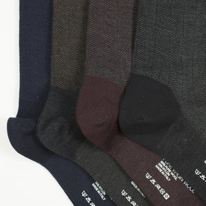 These over-the-calf socks mix navy and blue in a classic herringbone pattern. Made in Italy of fine wool with some nylon for better performance, the toes are hand-linked for wearing comfort.