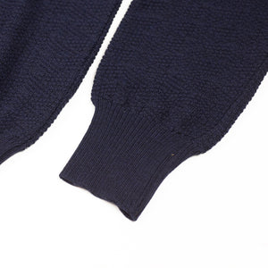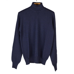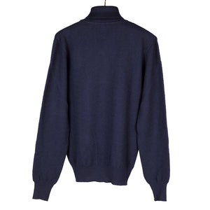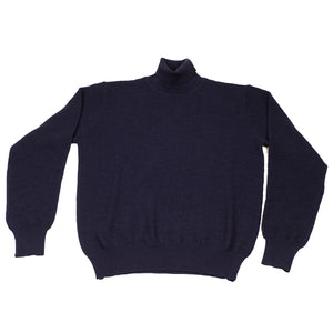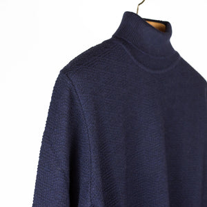 Navy rollneck extrafine merino wool sweater, diamond pattern