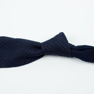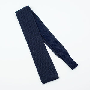 Knit ties are a must have in any gentleman's closet, and for every season. We commissioned this silk version from Sozzi with an 7 cm width and square shaped end. The self-stripe gives it a more sophisticated, less casual look than traditional knit ties