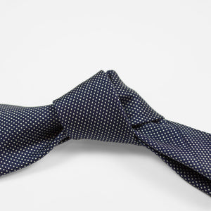An incredibly versatile and tasteful tie. The hand-printed dots add an artisanal element to an uber-classic navy pindot tie. Every man should have one on his tie rack.