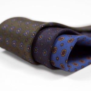 A lovely and classic neat print tie, with a lighter interlining for a softer knot