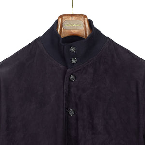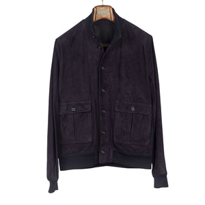 A stylish take on the classic A-1 flight jacket, invented by Valstar in 1935. Now an icon of Italian design, its goat suede shell, button front and ribbed stand-up collar make it a rakish and comfortable choice for casual days. This spring version is unlined.