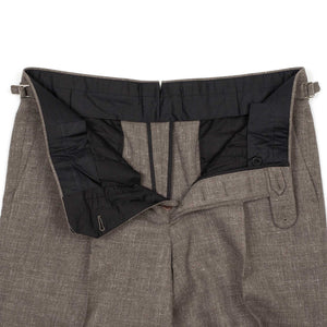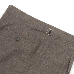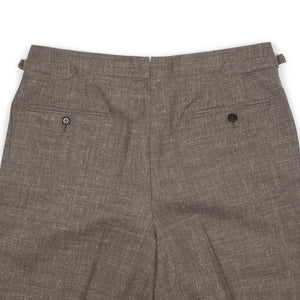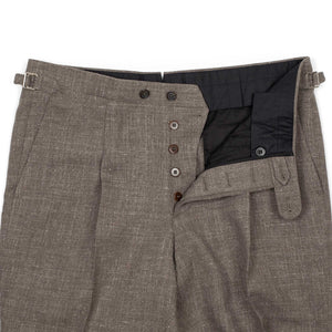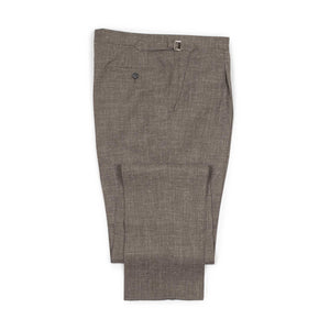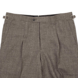 x Sartoria Carrara: pleated trousers in Fox Bliss mixed brown wool & linen