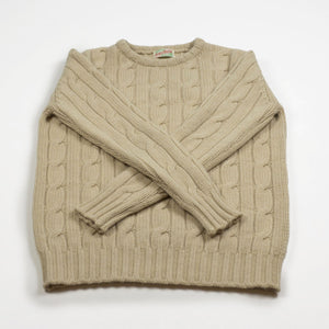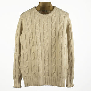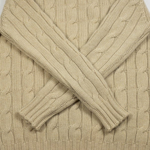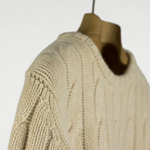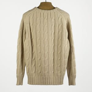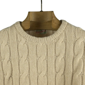 A winter indulgence, this luxurious 6-ply cashmere crewneck sweater is made by hand in Scotland with high quality Todd & Duncan cashmere. The cable pattern and oatmeal beige color are truly timeless.