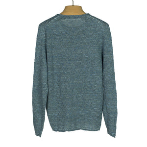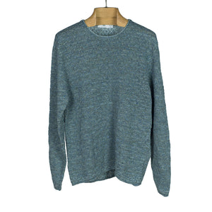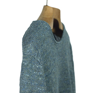 An exciting variation on the summer linen tunic, the "Wave" tunic uses a web of contrasting yarn on the underside of the sweater to create ripples and waves in the sweater. Once again, Inis Meain's knitwear expertise and excellent yarn choices are at the forefront here. The linen knit has a soft and cool hand and is perfect for summer evenings, but can easily carry over to fall and spring.