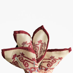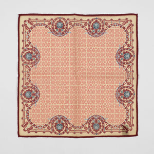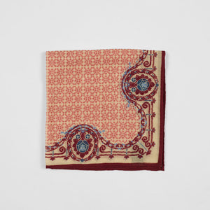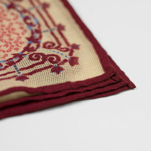 This pocket square marries an incredible texture due to its loose gauze weave, with beautiful design and colors. The square size is thoughtfully chosen to complement the crunchy texture and avoid overstuffed chest pockets.