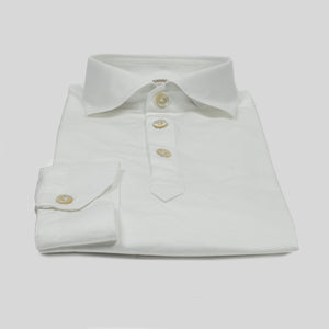 Part of a series of long sleeve polo shirts we designed in collaboration with G. Inglese. Wear it untucked for a relaxed look, or with a sport coat for that smart casual approach. Cut from a lightweight Tessilmaglia cotton jersey fabric woven in Italy, the shirt's sizing and fit is similar to our G. Inglese dress shirts with a shorter body length for better proportions when worn untucked.