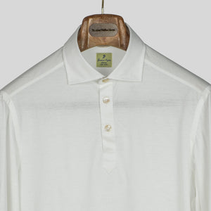 Off-white lightweight cotton jersey long sleeve polo shirt, soft collar