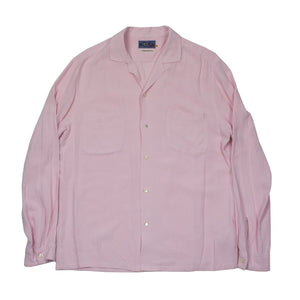 This is not one to miss out on. Blue Blue Japan updates the rayon shirt formula with a uniquely textured gauzy fabric that complements the pale pink color perfectly. Beautiful mother of pearl buttons and a unique open collar finish things off on your new favorite summer shirt.