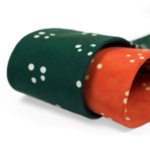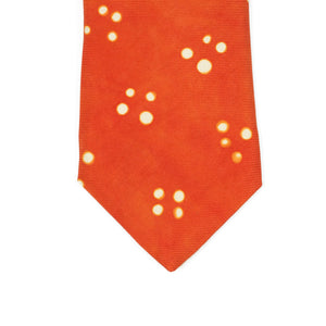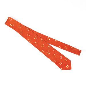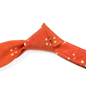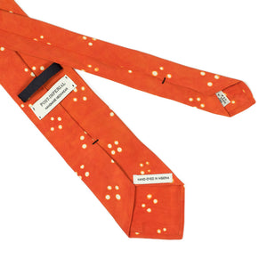 Orange self-tipped silk tie, white Adire cross dot pattern