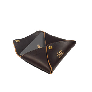 Il Micio's interpretation of a card case is clearly inspired by Japanese origami techniques. In a unique approach, Fukaya uses no stitching at all, and simply one snap rivet to create and structure a closed card case. As the leather piece is simply bent on all sides and not pressed flat along the folded side, so the folds will reflect your own use and habits. The vegetable-tanned vachetta leather will age and acquire patina with use and time.