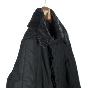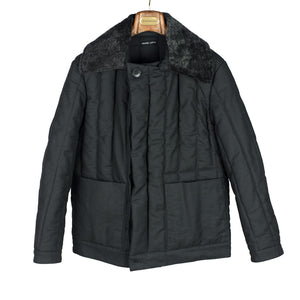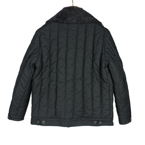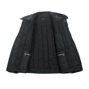 Based on the outerwear worn by 1960's East German Army border patrol, you know this jacket is ready for the cold, from the heavyweight quilted body to the oversized real shearling collar.