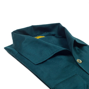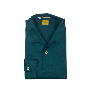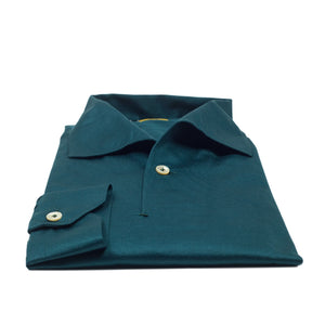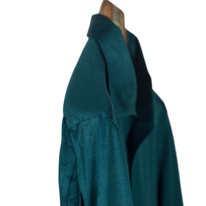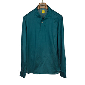 Petrol green lightweight cotton jersey long sleeve polo shirt, one-piece "Miami" collar