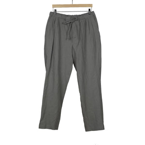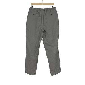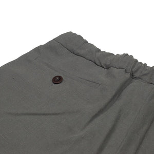 Take a closer look, because these are not your usual linen pants: the heavyweight linen canvas from Belgium is treated and printed on one side with grey pigment, giving it a sort of coated effect.