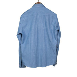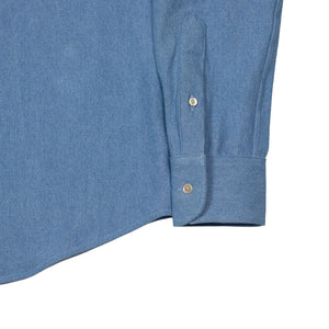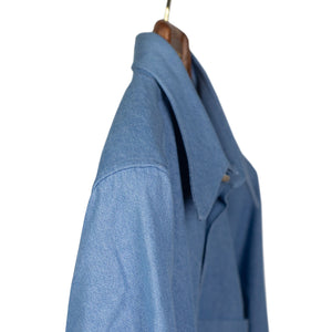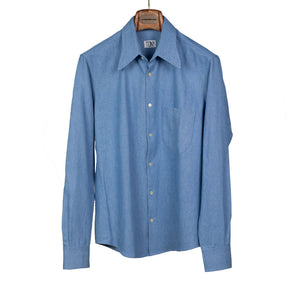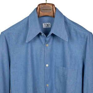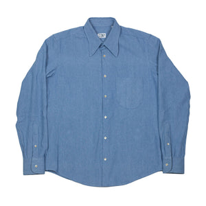 When we approached Tony with the idea of doing a denim shirt, he immediately knew just what to do. Utilizing a new collar shape and light washed denim, it has a vintage look without being over the top. Pair with more denim for best results.