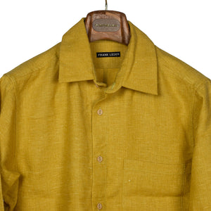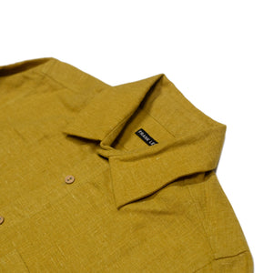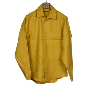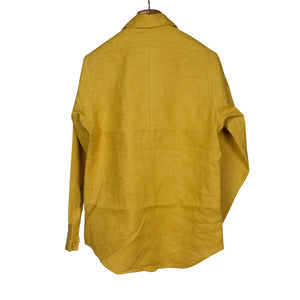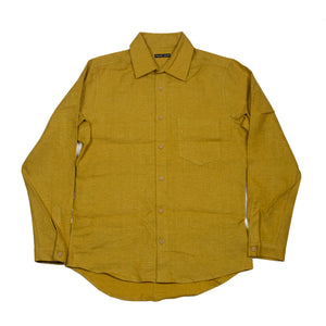 Made up in the perfect fall yellow to complement the olives and greys of the rest of the collection, this shirt has a lot more to it once you start looking. The cotton fabric from a small mill near Graz in Austria is gauzy with lots of striation, but has been brushed to give it a softer feel and look.