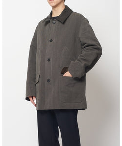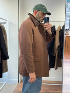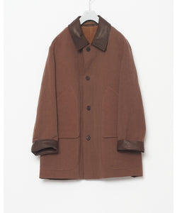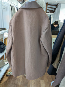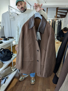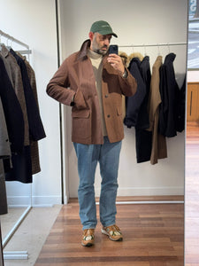 [PRE-ORDER DEPOSIT FW25] Work Coat in brown persimmon-dyed heavy cotton hemp canvas with sheep leather accents