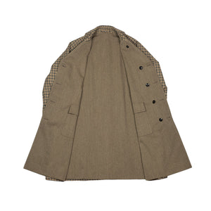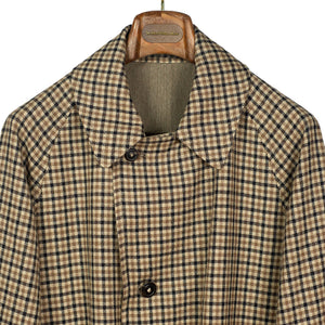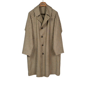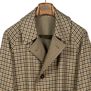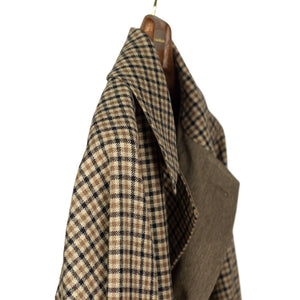 Reversible chesterfield coat in brown gunclub wool/alpaca and khaki melange wool/mohair