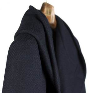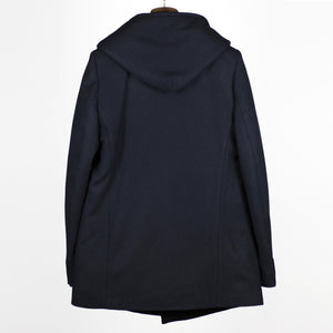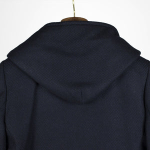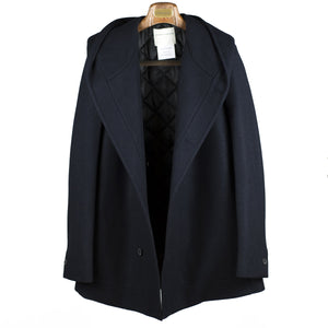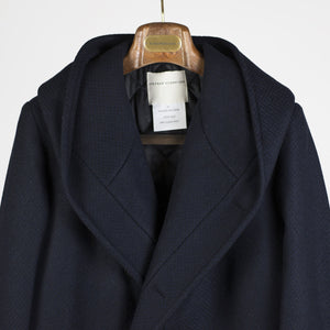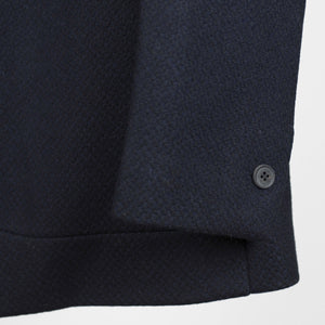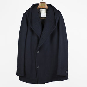 The Rock is a great example of what makes Stephan Schneider outerwear what it is - the oversized hood-turned-shawl gives it a beautiful drape, while swathing you in a study navy blue basketweave wool