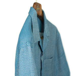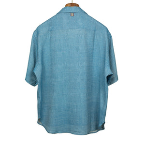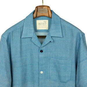 Ronen camp collar shirt in handwoven checkered light blue cotton