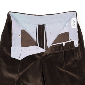 Brooklyn double-pleat high-rise wide fit trousers in chocolate brown Brisbane Moss cotton corduroy