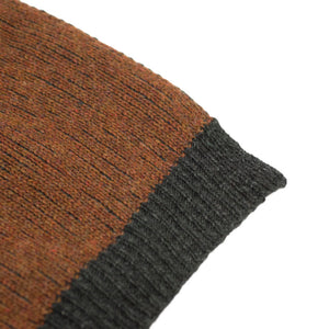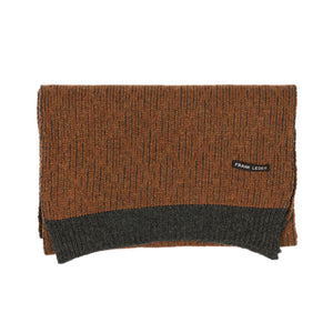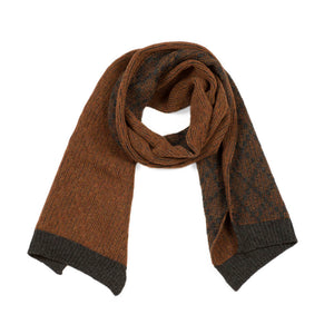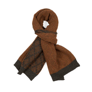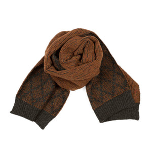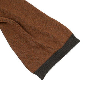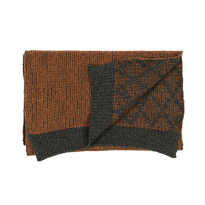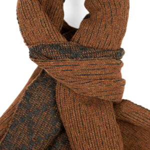A more colorful alternative, this scarf features the same rust and charcoal yarns as the sweater and cardigan.