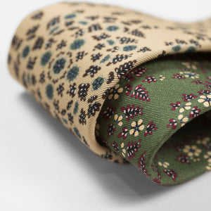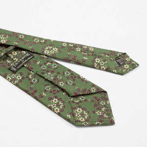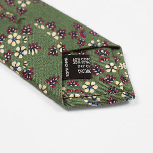 A wonderful and whimsical tie for the warmer months. The floral print is tasteful and intricate, while the texture and cotton content combine to create a rather unique and pleasant hand.